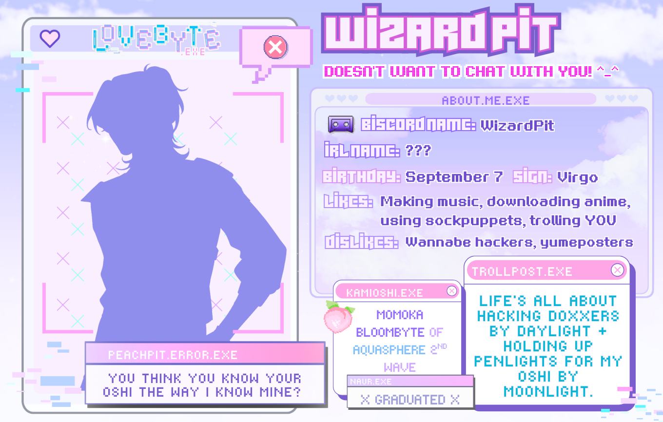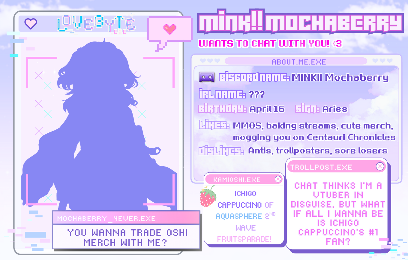 lovebyte.exe : inspired by Mystic Messenger, VTubers, and internet spam